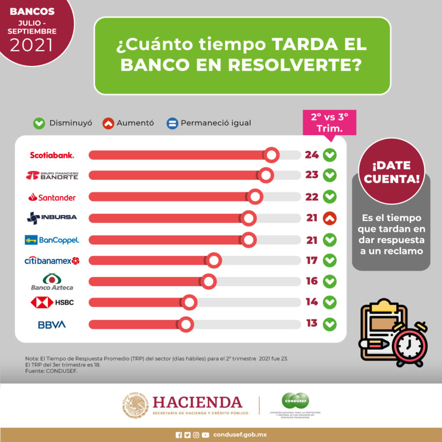 En contraparte, las instituciones bancarias con menor número de quejas durante el cuarto trimestre de 2021 fueron: