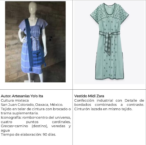 Uno de los casos más conocidos ocurrió en 2021 cuando la Secretaría de Cultura de México denunció a Zara por un vestido que replicaba un huipil tradicional creado por el pueblo mixteco de San Juan Colorado, Oaxaca. La elaboración de una de estas prendas puede tardar hasta un mes, un trabajo artesanal y ancestral que la empresa comercializó como un producto de moda pasajera.