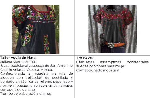 La marca Patowl fue señalada por comercializar camisetas que eran una “copia fiel” de la indumentaria del pueblo zapoteco de San Antonino Castillo Velasco, Oaxaca. Estos diseños, que se elaboran a mano con la técnica conocida como “Hazme si puedes”, fueron replicados de manera industrial, despojándolos de su valor artesanal y cultural.